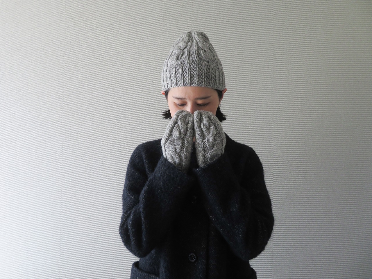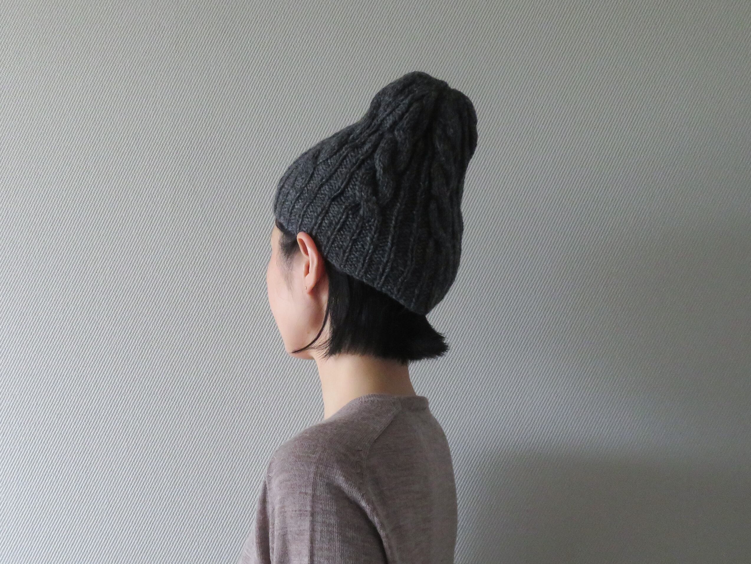 螺旋状の縄編み模様の帽子。シンプルで親しみやすい steam knit でも毎年人気のデザイン。どなたにも似合う、どんな装いにも合わせやすい、締め付けもチクチクもしない、それでいてあたたかい。寒い季節にいつもかぶっていたくなる帽子を目指しました。