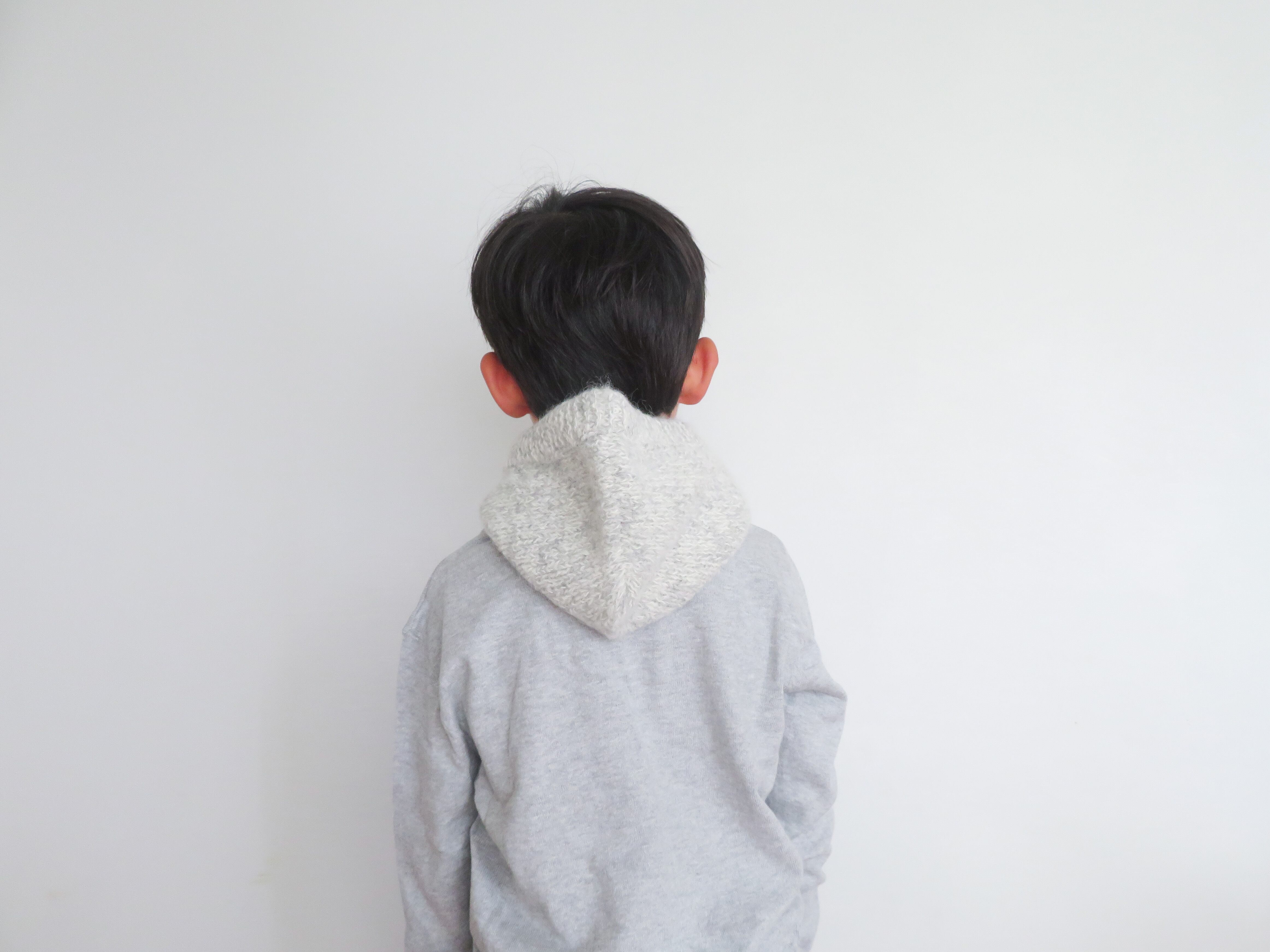 雪の日。北風の吹く日。自転車に乗る日。顔まわりをすっぽりと包まれるあたたかさはそんな日にこそ格別です。フードをかぶらずネックウォーマーとしてお使いいただくのもおすすめ。