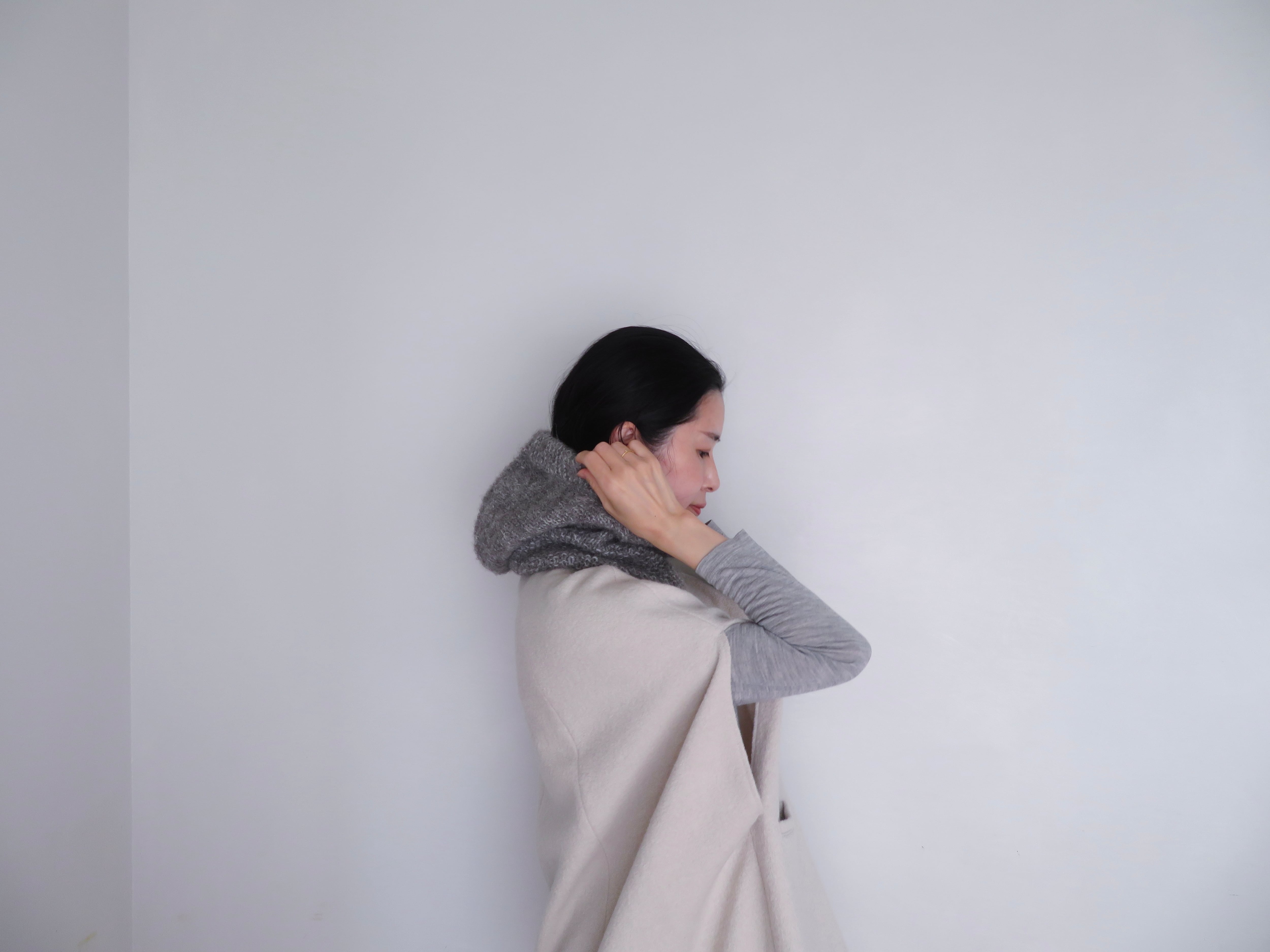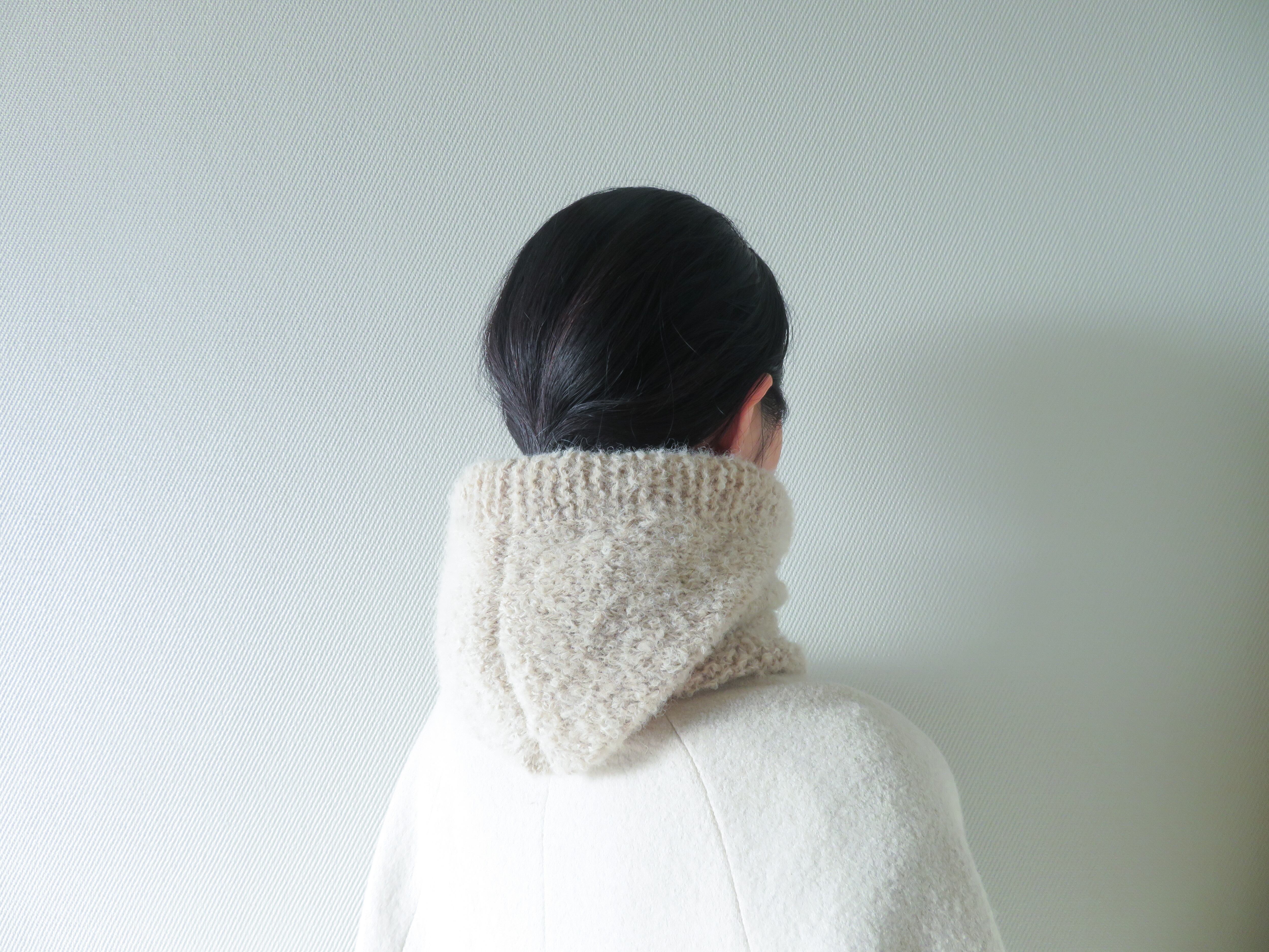 雪の日。北風の吹く日。自転車に乗る日。顔まわりをすっぽりと包まれるあたたかさはそんな日にこそ格別です。フードをかぶらずネックウォーマーとしてお使いいただくのもおすすめ。