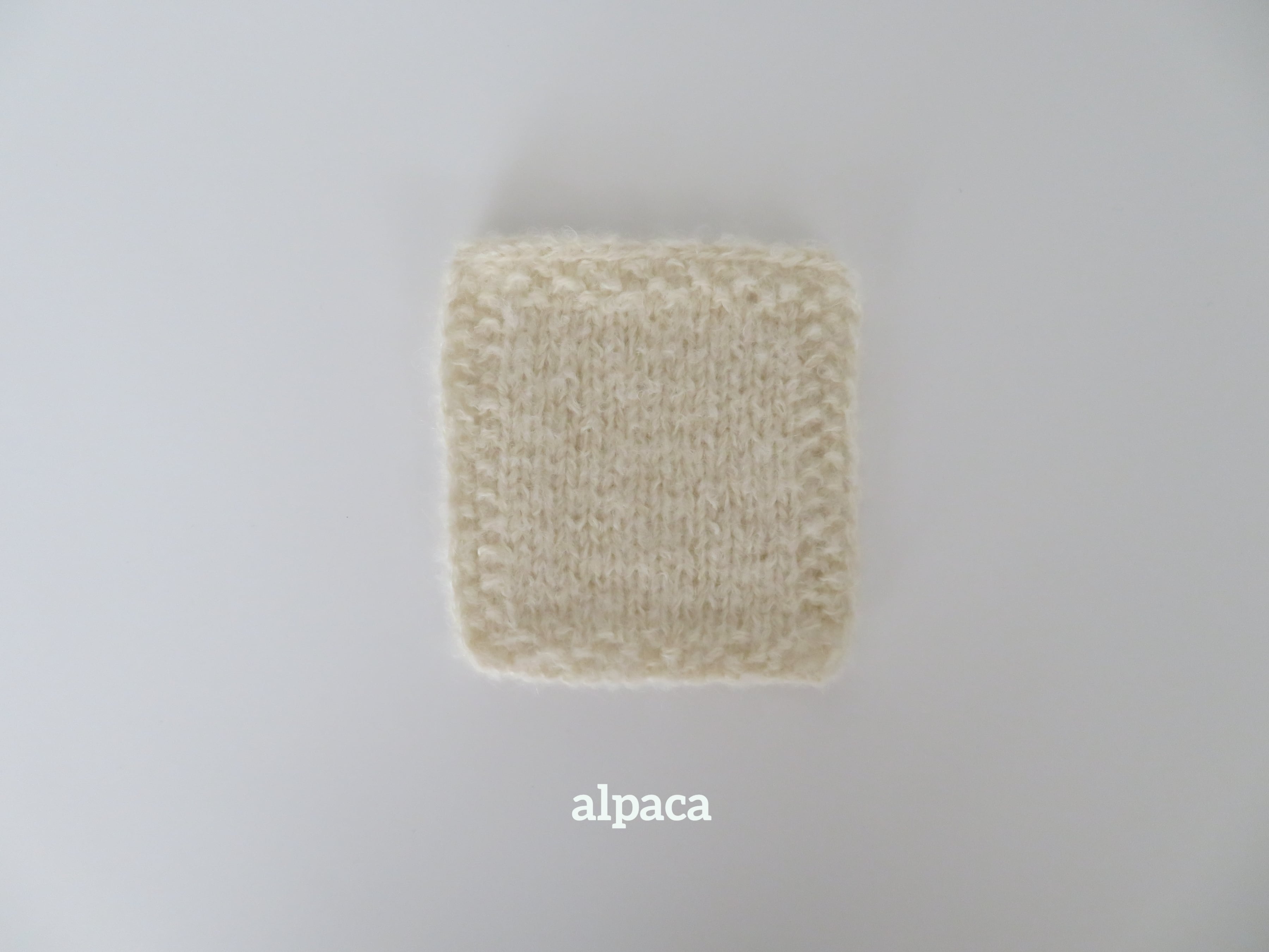 風合いが損なわれることがありますので、お手入れはドライクリーニングをおすすめします。ご家庭でお洗濯される場合は、デリケート製品専用の洗剤で優しく押し洗いし、タオルドライ後直射日光の当たらないところで平干ししてください。濡れた状態の編み地はとても伸びやすいため、重力がかからないように注意して、風通しの良い平らな場所で丁寧にかたちを整えて乾かすようにしてください。